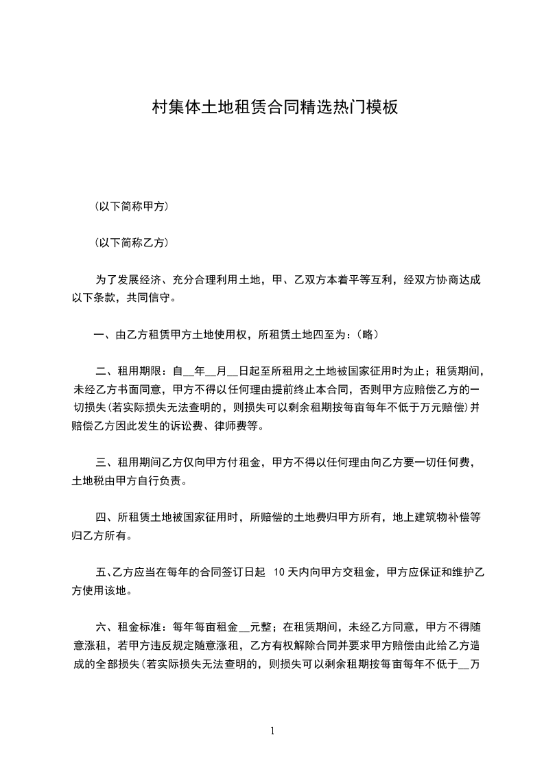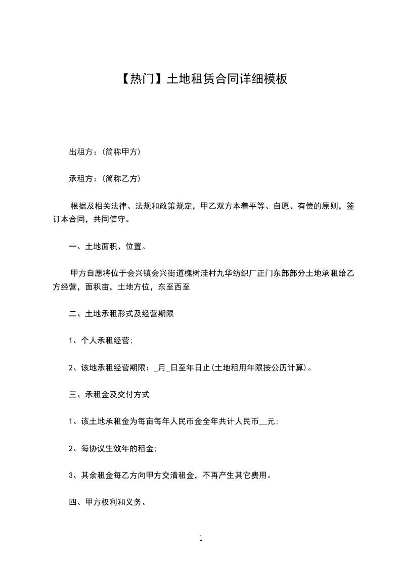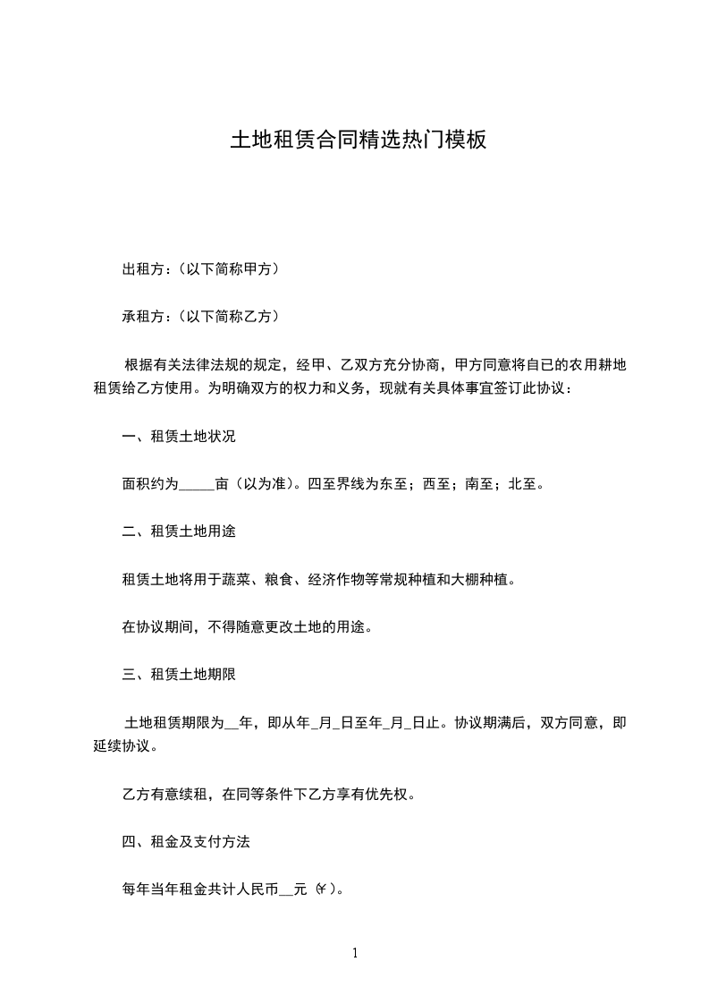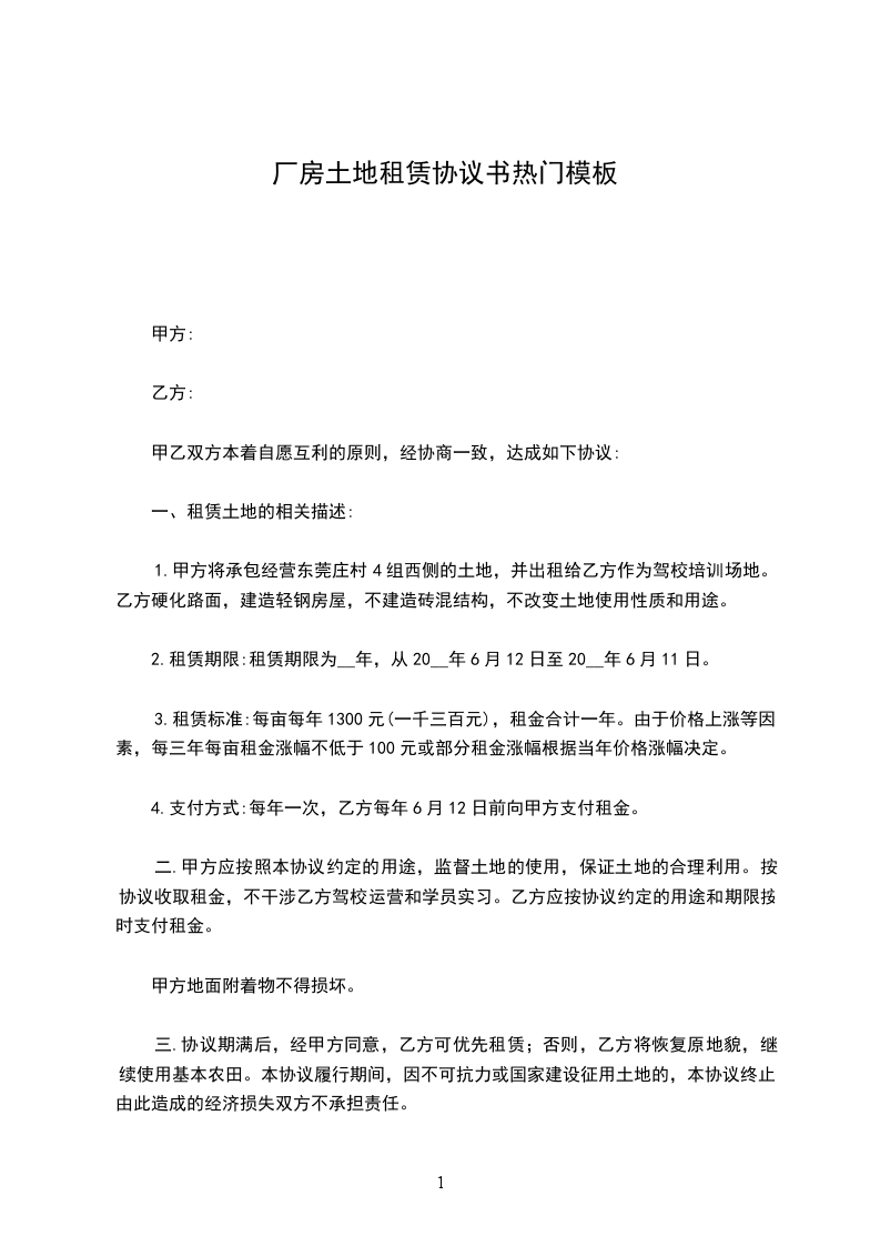 土地租赁期限为__年,即从年_月_日至年_月_日止。协议期满后,双方同意,即延续协议。