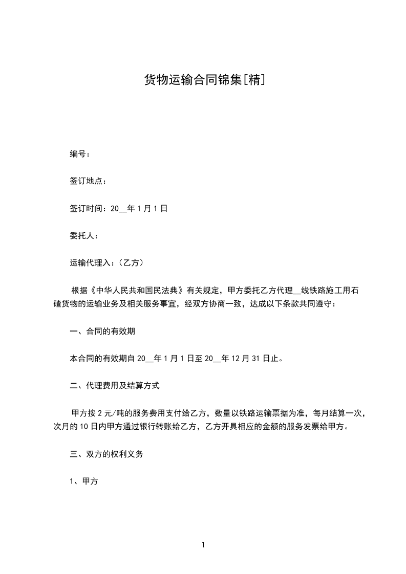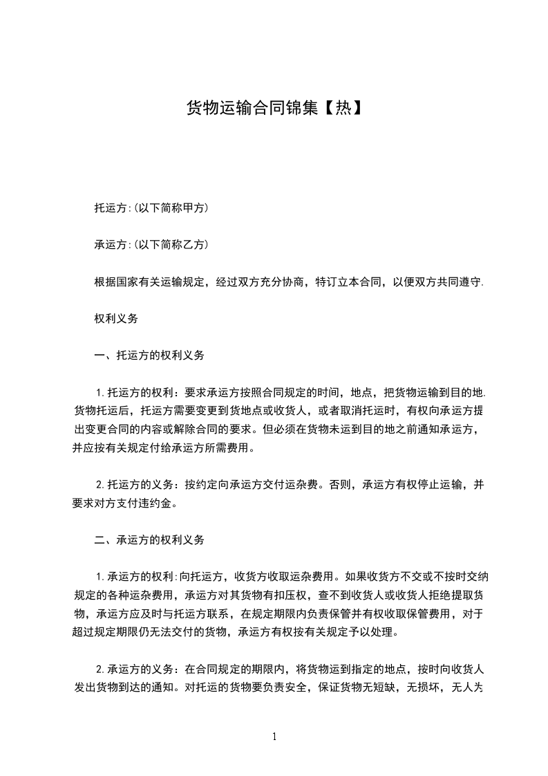 2、1运输时间年_月_日起至年_月_日,甲方预报当月运输计划,货柜数量根据甲方所提供的数量而订,以便乙方提前调配车辆,确保运力。