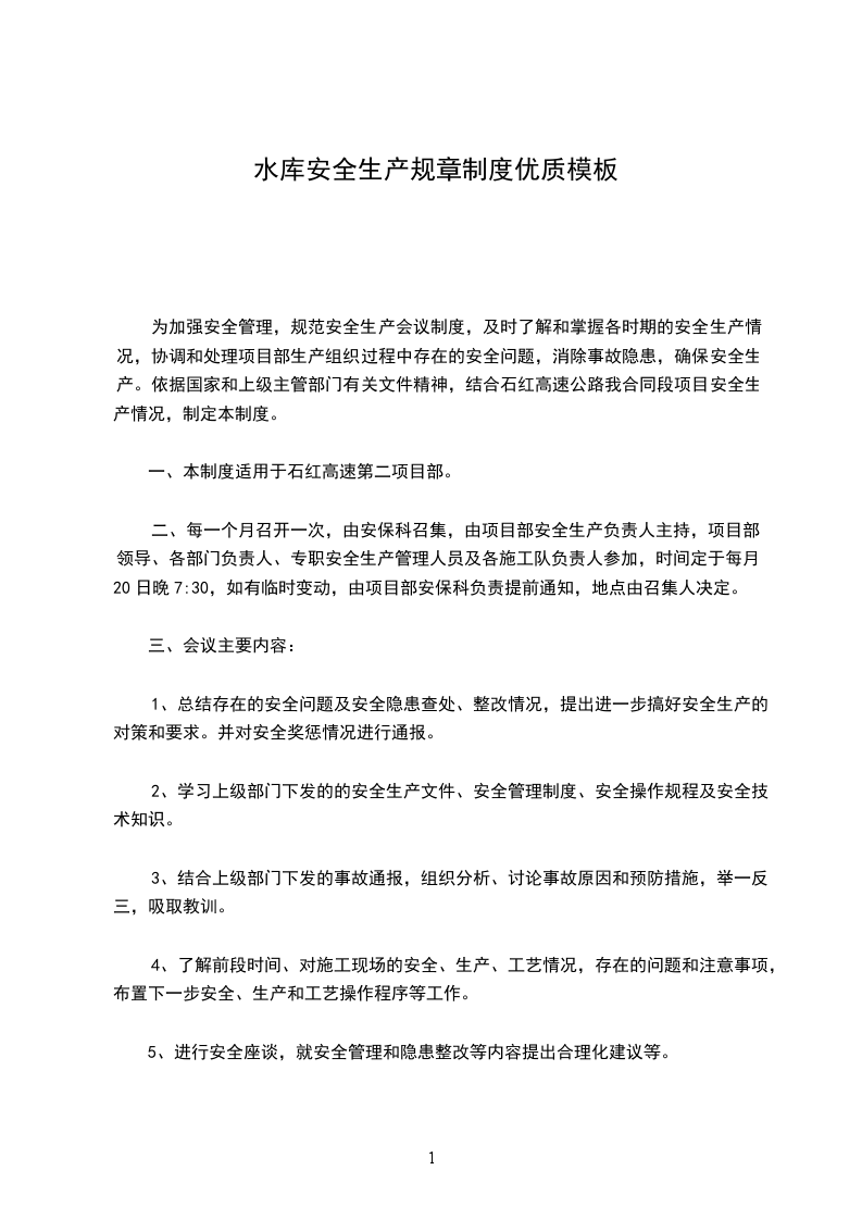 适用于本公司安全生产会议的召开。