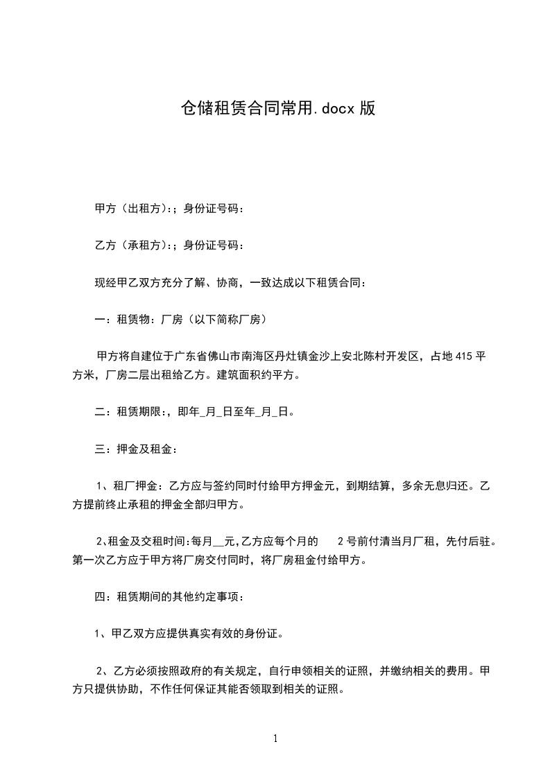 1.1甲方将位于__________________的仓库(以下简称租赁物)租赁于乙方使用。租赁物面积经甲乙双方认可确定为_________平方米。