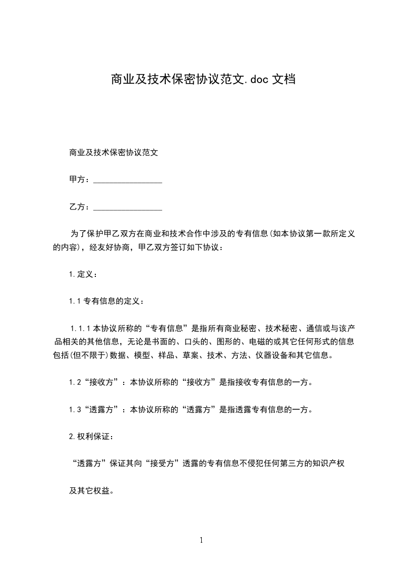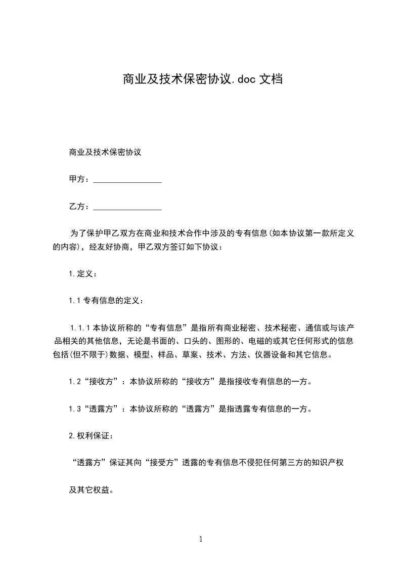 1、乙方确认甲方拥有乙方公司的全部知识产权,包括但不限于专利、商标、版权及商业秘密。乙方保证其过去没有、现在没有、将来也不会主张,也不会向第三者宣称其拥有该等权利。本协议没有任何条款涉及到甲方任何知识产权的转移。