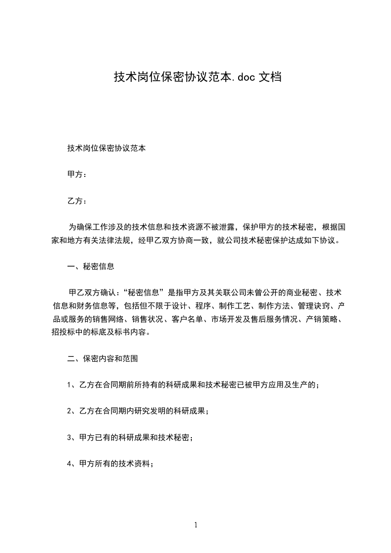 1.乙方对在工作过程中接触到的甲方的任何资料、文件、数据(无论是书面的还是电子的),以及对为甲方服务形成的任何交付物,负有为甲方保密的责任。未经甲方书面同意,乙方不得以任何方式向任何第三方提供或透露。