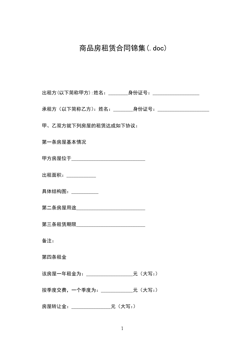 承租方(以下简称乙方):姓名:________身份证号:_____________________
