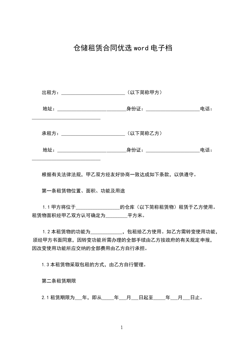 1.1甲方将位于__________________的仓库(以下简称租赁物)租赁于乙方使用。租赁物面积经甲乙双方认可确定为_________平方米。