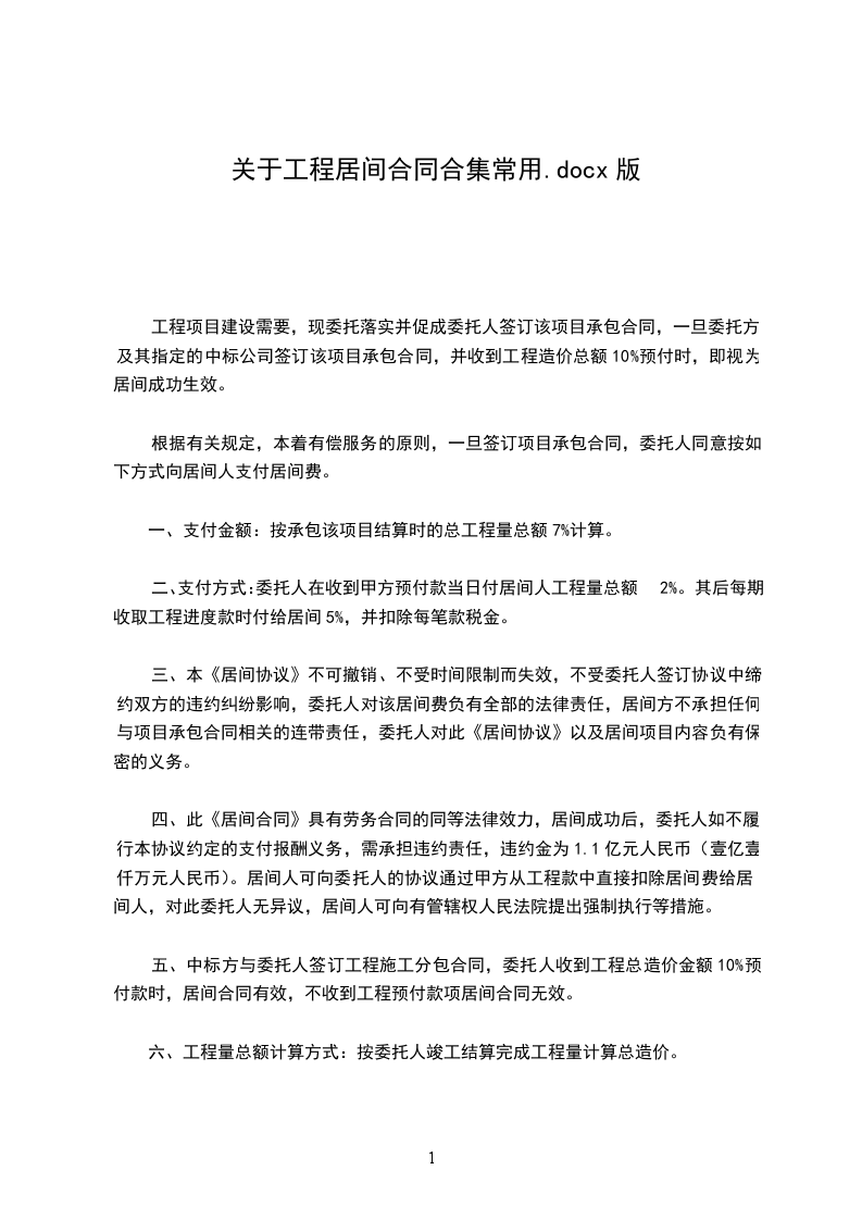 工程项目建设需要,现委托落实并促成委托人签订该项目承包合同,一旦委托方及其指定的中标公司签订该项目承包合同,并收到工程造价总额10%预付时,即视为居间成功生效。
