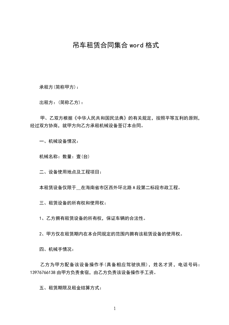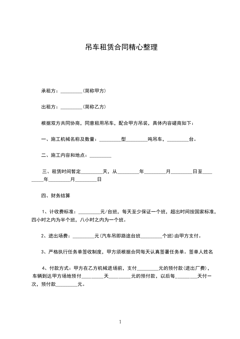 承租方:_________(简称甲方)出租方:_________(简称乙方)根据双方共同协商,同意租用吊车,配合甲方吊装,具体内容磋商如下:一、施工...