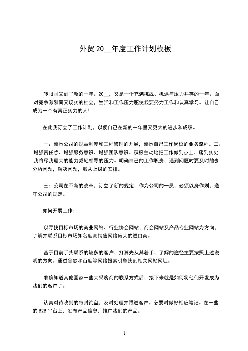 以上是我针对20__年的工作计划和发展方向,我会更加努力、认真负责的去对待本岗位的工作,希望通过自己的努力和他人的协助能够成功的达成计划并突破,取得更好的成绩并提高自己。