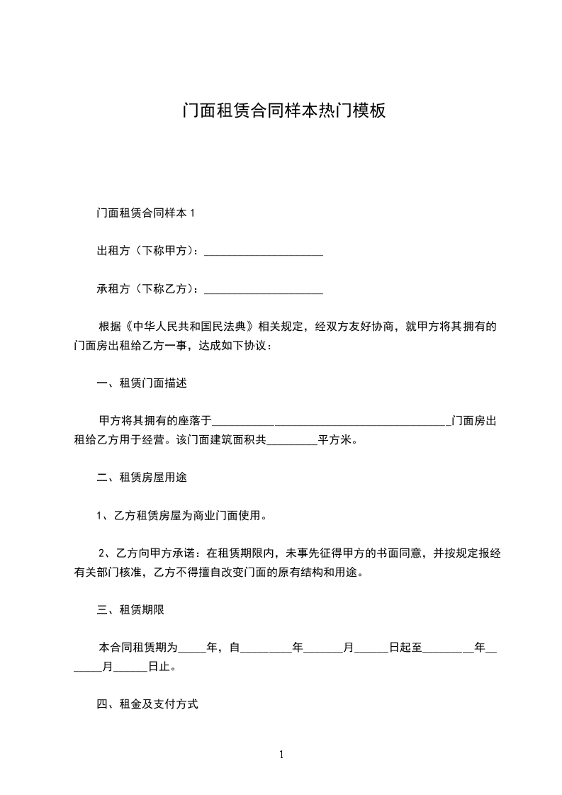 根据《中华人民共和国民法典》相关规定,经双方友好协商,就甲方将其拥有的门面房出租给乙方一事,达成如下协议: