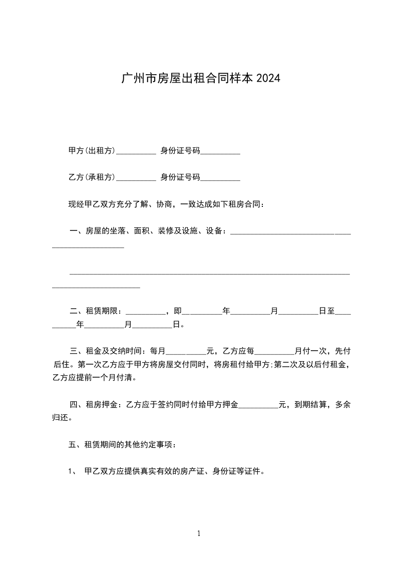 甲方(出租方)__________ 身份证号码__________