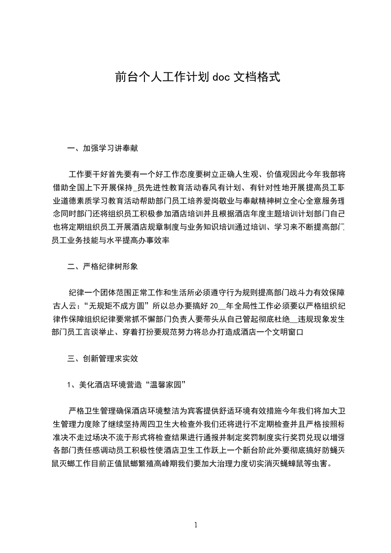 工作要干好首先要有一个好工作态度要树立正确人生观、价值观因此今年我部将借助全国上下开展保持_员先进性教育活动春风有计划、有针对性地开展提高员工职业道德素质学习教育活动帮助部门员工培养爱岗敬业与奉献精神树立全心全意服务理念同时部门还将组织员工积极参加酒店培训并且根据酒店年度主题培训计划部门自己也将定期组织员工开展酒店规章制度与业务知识培训通过培训、学习来不断提高部门员工业务技能与水平提高办事效率