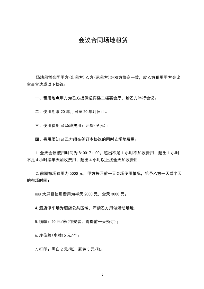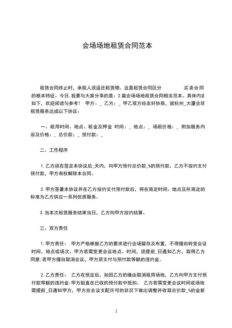 甲乙双方经友好协商,就杭州________大厦会场租赁服务达成以下协议: