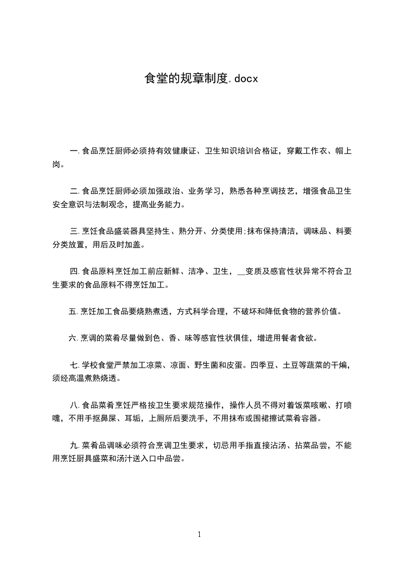 一.食品烹饪厨师必须持有效健康证、卫生知识培训合格证,穿戴工作衣、帽上岗。