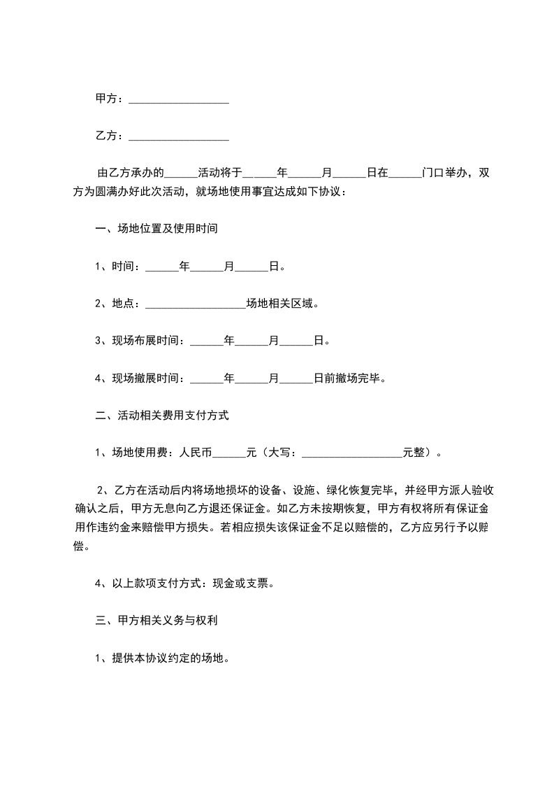 一、甲、乙双方同意在20__年_月_日不在继续履行合同、并在20__年_月_日终止《场地租赁协议》场地物品、价值、经营损失及乙方已缴租金及押金等一切费用,甲、乙双方不得就《场地租赁合同》再向对方主张任何权利;