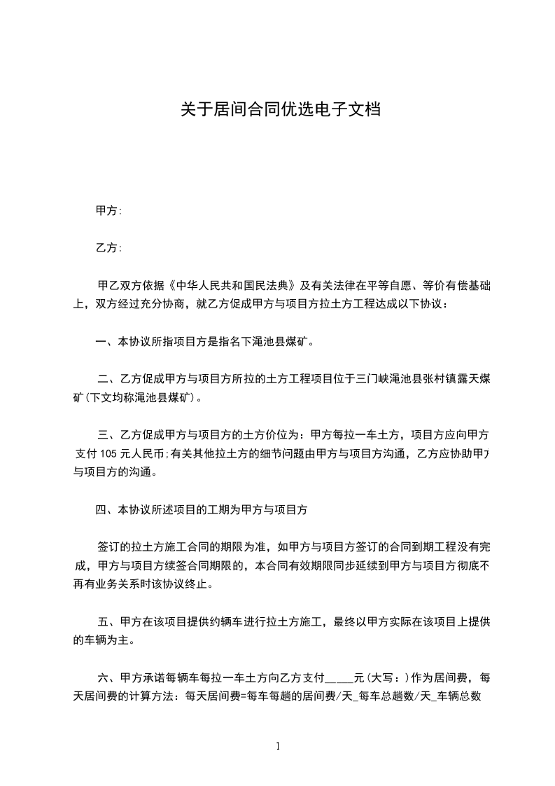 六、甲方承诺每辆车每拉一车土方向乙方支付_____元(大写:)作为居间费,每天居间费的计算方法:每天居间费=每车每趟的居间费/天_每车总趟数/天_车辆总数