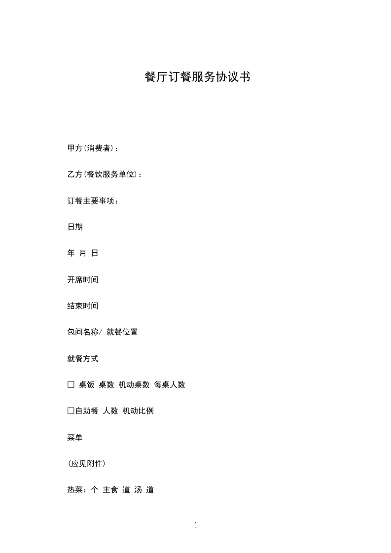 北京市订餐合同条款