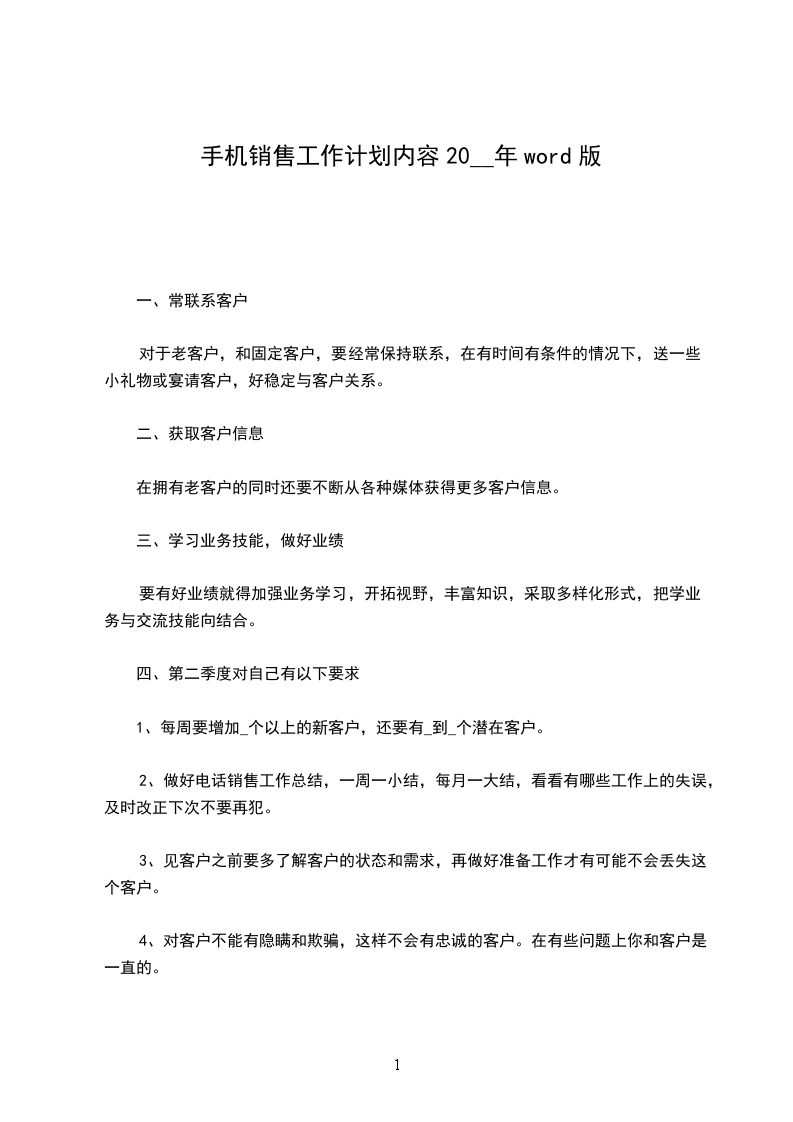 1、每周要增加_个以上的新客户,还要有_到_个潜在客户。