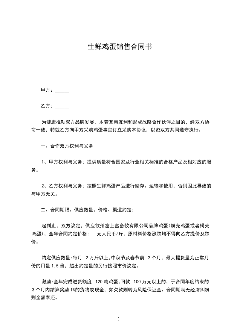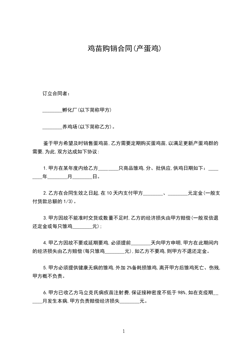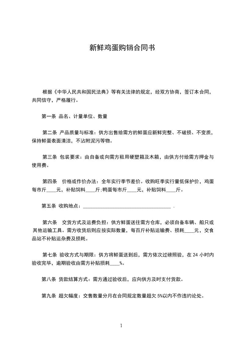 第十一条 其他约定:供方现存生产蛋鸡____只、蛋鸭____只,若需淘汰更新,须经双方协商同意,才能减少供货数量。