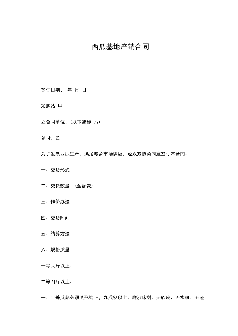 一、二等瓜都必须瓜形端正,九成熟以上。脆沙味甜、无软皮、无水斑、无碰压伤、无腐烂、无葫芦头瓜。对白瓤、白籽以及倒瓤、死秧瓜、扭蔓、烂顶、污水、马蜂窝、尿素瓜、生瓜一律不收购。