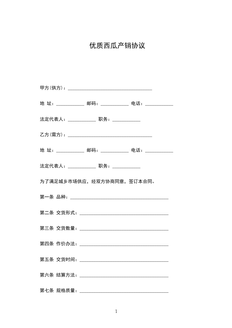 为了满足城乡市场供应,经双方协商同意,签订本合同。
