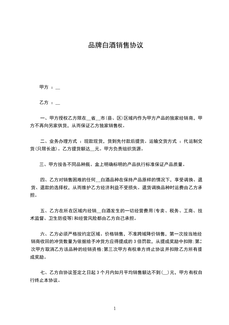 1、乙方应树立起本区域完全的销售网络,保证经销甲方的产品在经销区域内终端铺货到达:商超____家,酒店____家,酒楼____家(附终端明详目录),产品进入所有终端网点铺货笼罩率第一个月应达到____%,第二个月当前保持在____%以上,每月建设堆头、端架的商超数量应坚持在商超总数量的____%以上,经甲方确认。