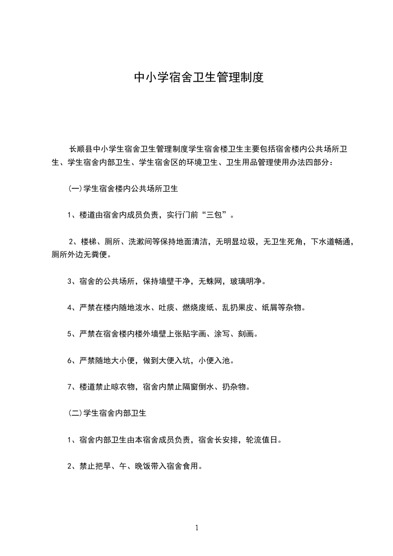 十一、每个寝室由宿舍管理老师排出卫生值日表,当天值日生必须认真打扫、整理,做到地面无果壳、纸屑,被子、鞋子、毛巾、衣服、热水瓶,牙刷杯等要按规定摆放整齐,全天保持干净,干燥。(被子叠成方块状,放在靠门一头,枕头放在靠窗一头,床面要平整,床单要清洁;鞋子一律放在床铺下方置鞋架子上;毛巾按照干净程度进行折叠挂放;衣物折叠好一律放进床下抽屉内,牙刷,热水瓶等生活用品按秩序的摆放在桌子上。)洗手间无积水,无异味,水池内外洁净,垃圾要及时倒掉。每天早、中、晚开窗通风,保持室内空气清新。十二、每个寝室的寝室长发现同学生病时及时向值班教师反映,立即救治。
