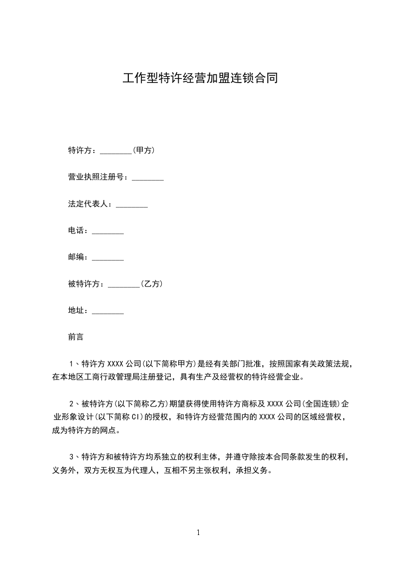 1﹑特许方XXXX公司(以下简称甲方)是经有关部门批准,按照国家有关政策法规,在本地区工商行政管理局注册登记,具有生产及经营权的特许经营企业。