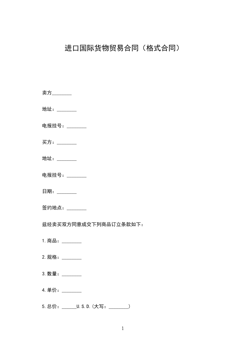 兹经卖买双方同意成交下列商品订立条款如下: