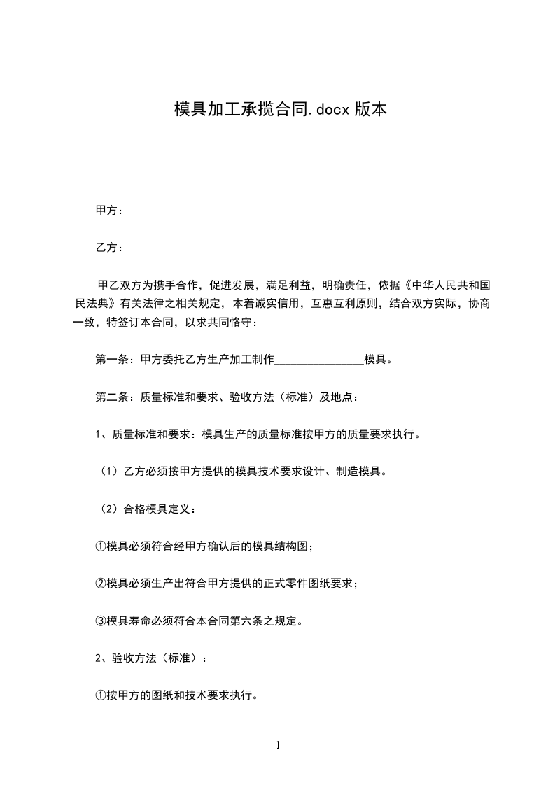 1、甲方负责提供本合同约定的模具的图纸、技术要求及有关标准。