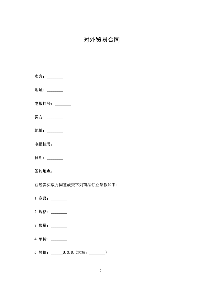 兹经卖买双方同意成交下列商品订立条款如下: