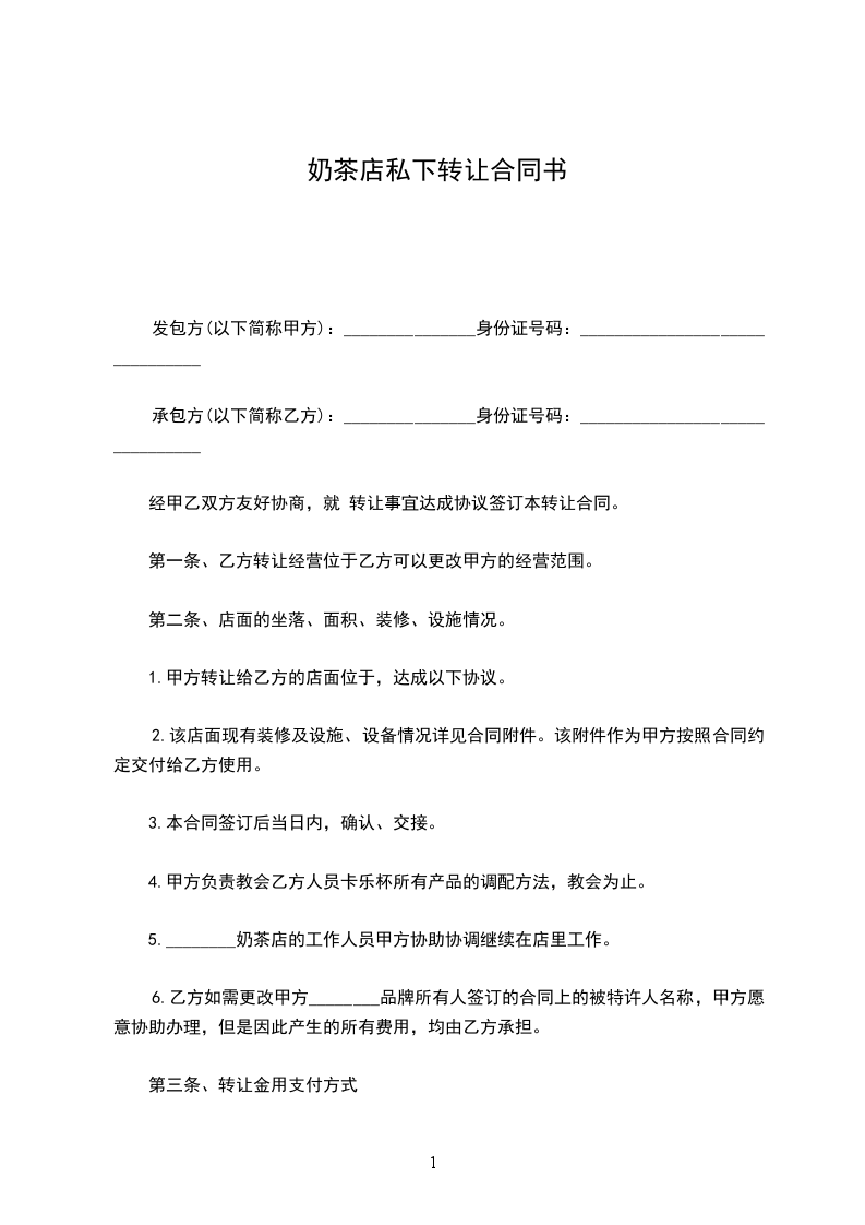 4. 如乙方不经营________店时甲方负责与________公司协调并将____________奶茶公司押金。