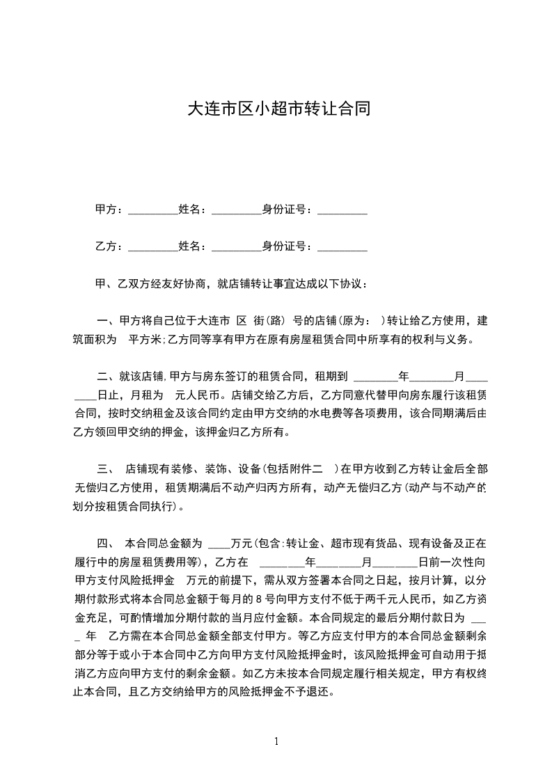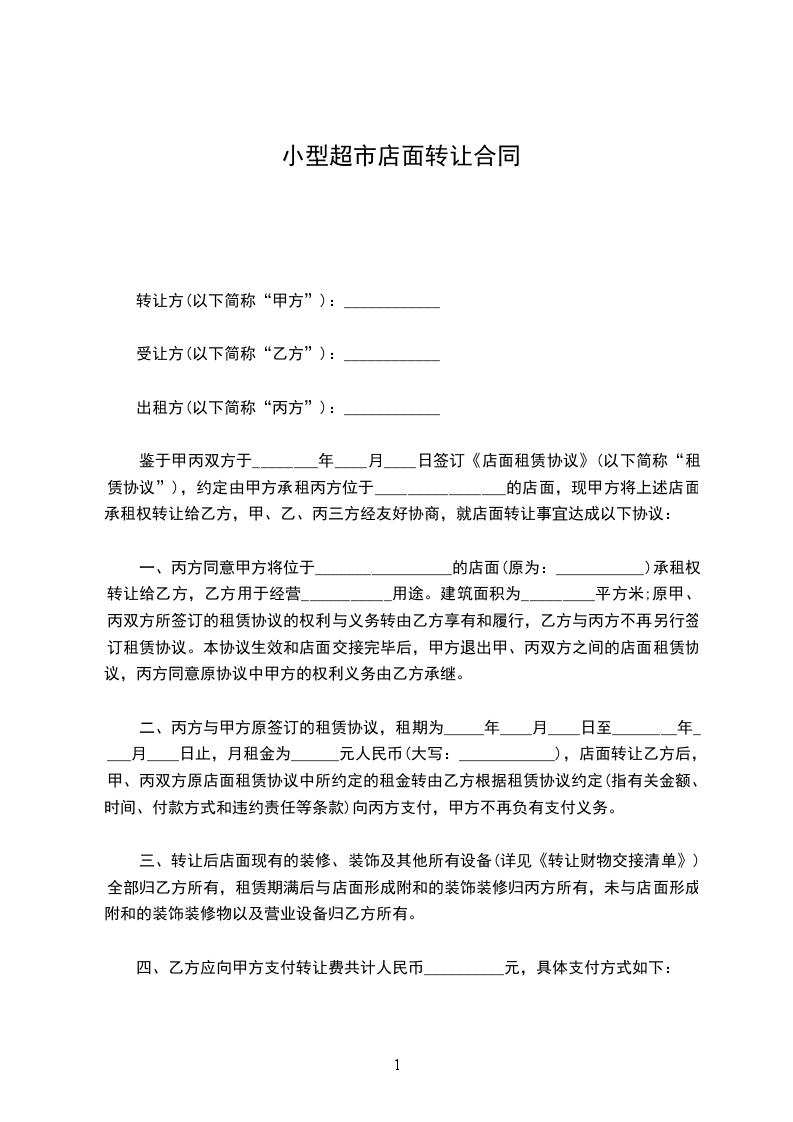 一、甲方将位于____________的门面转让给乙方,让乙方租赁使用,门面的建筑面积为______平方米;