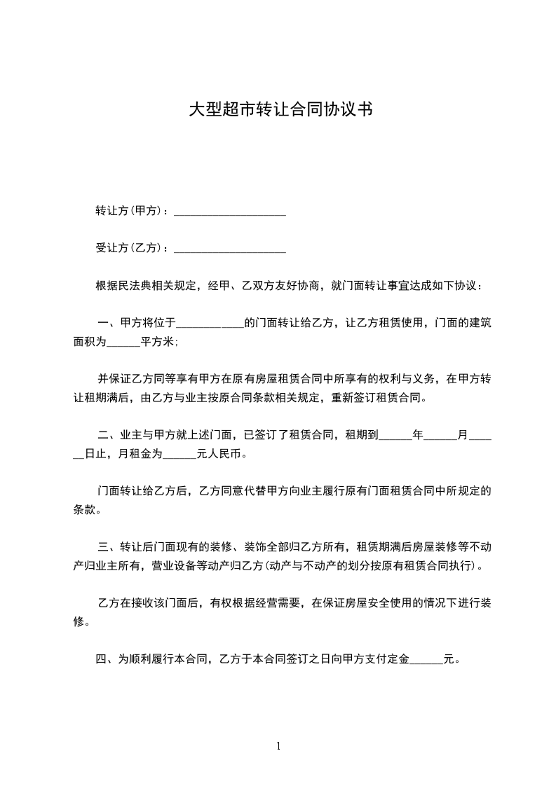 根据民法典相关规定,经甲、乙双方友好协商,就门面转让事宜达成如下协议: