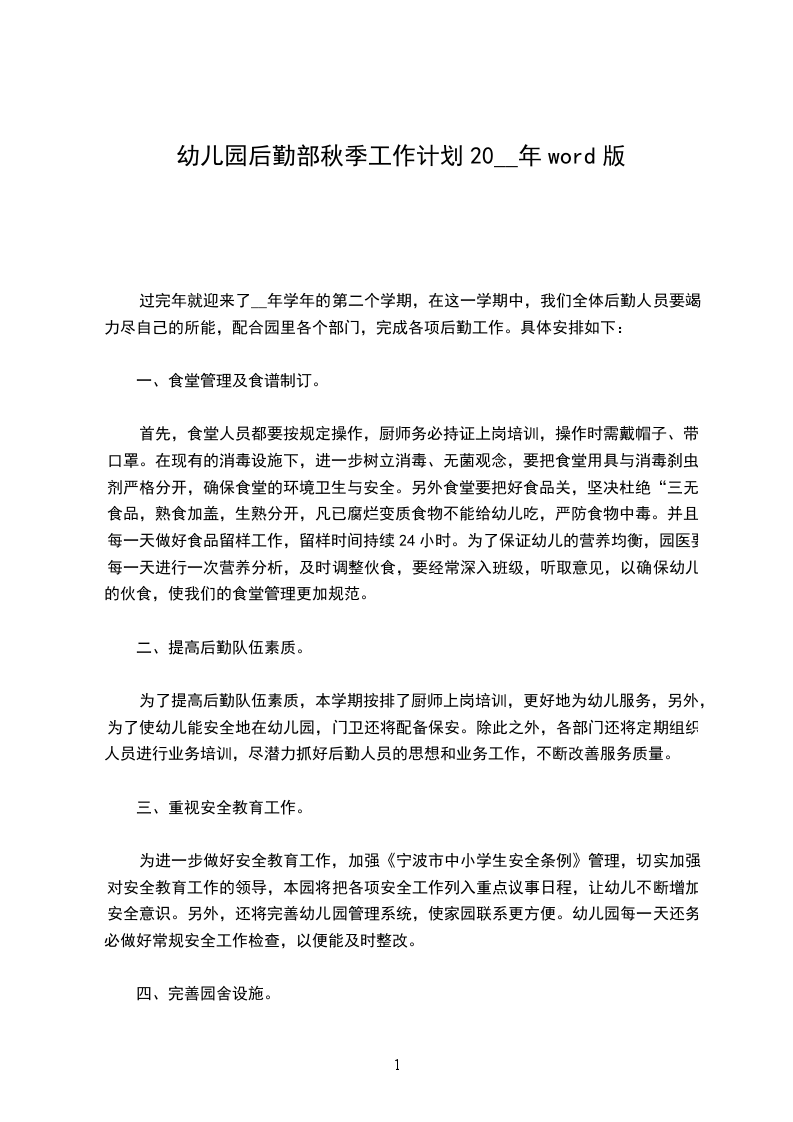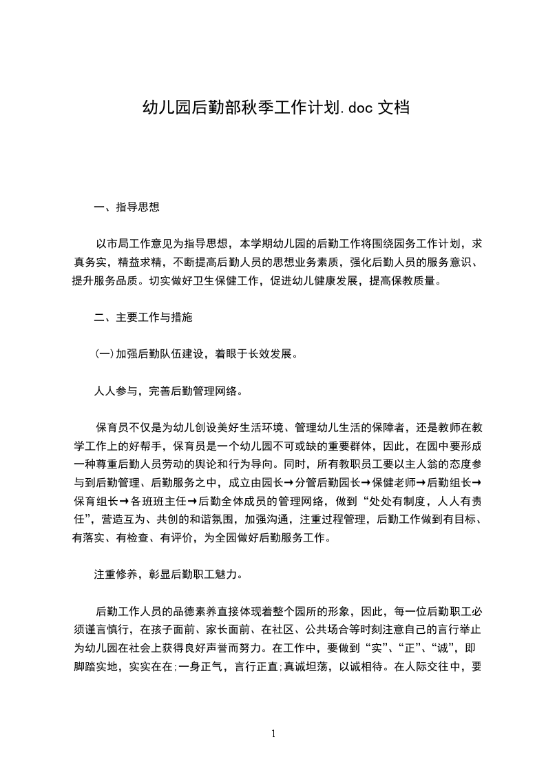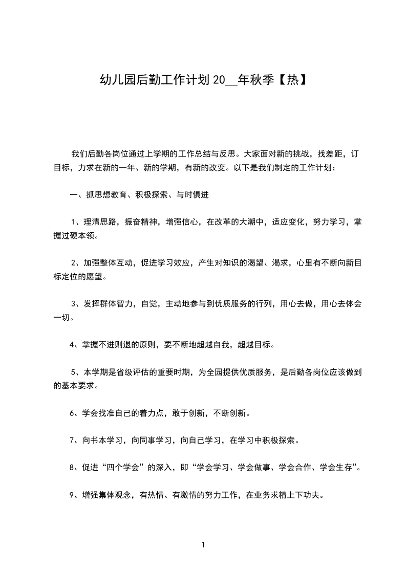 1、进一步加强人员的培训与教育,认真学习贯彻上级文件精神,细学《保育工作手册》,使后勤保育工作细化、量化,增强工作责任心,尽力协助老师共同完成保教任务。