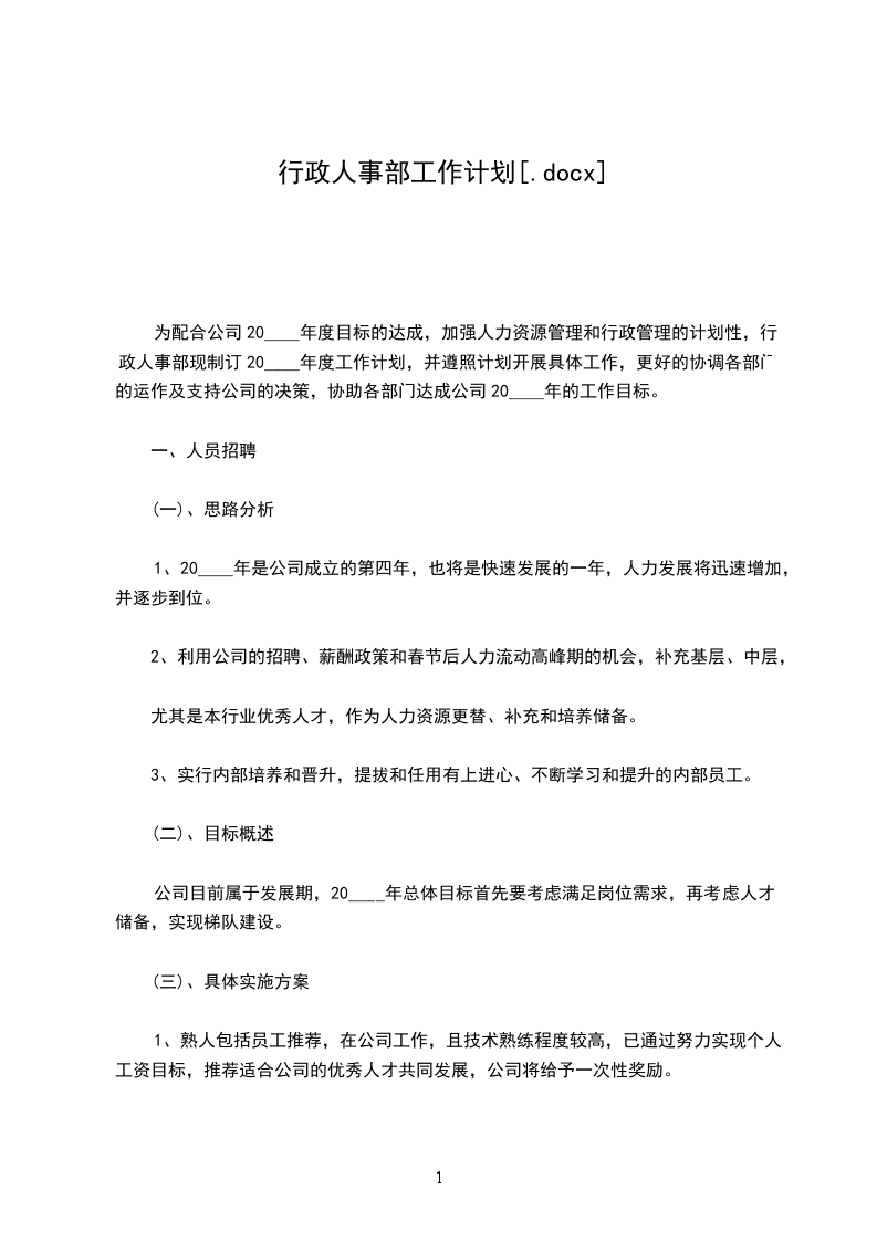 总之,__年行政人事部将把所有工作都围绕来在员工的选、用、育、留等方面开展,同时也是进一步深化人力资源系统管理的一年,通过这一年的努力从而改善现有的人力资源管理水平,认真执行好各项计划和要求,为公司创造更多的利润空间,发挥更大的作用。