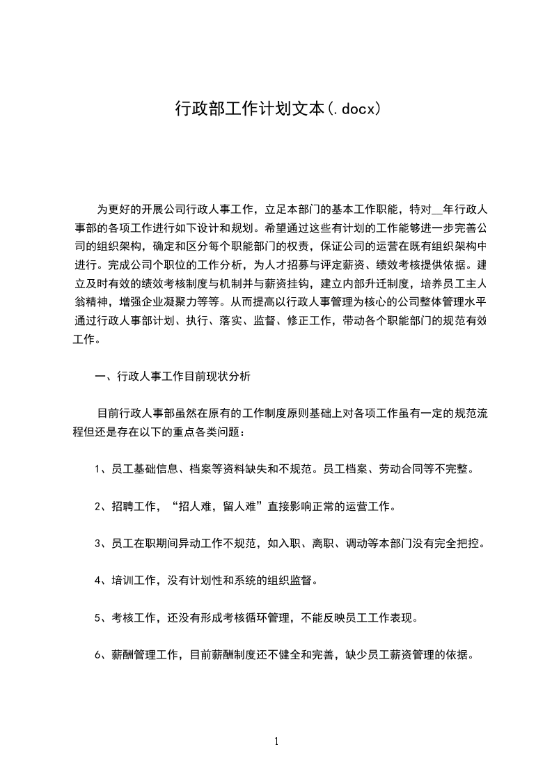 1、行政人事部在__年将大力加强本部门的内部管理和规范,完善部门组织职能;提升部门员工人力资源专业技能和业务素质;提高部门工作质量要求。