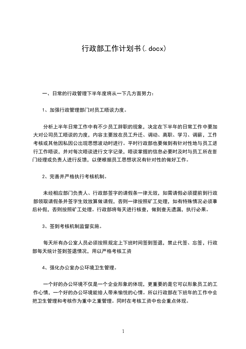 1、行政人事部计划在__年对办公室管理力度进一步加强。办公室管理的难点主要是办公环境卫生、考勤等。