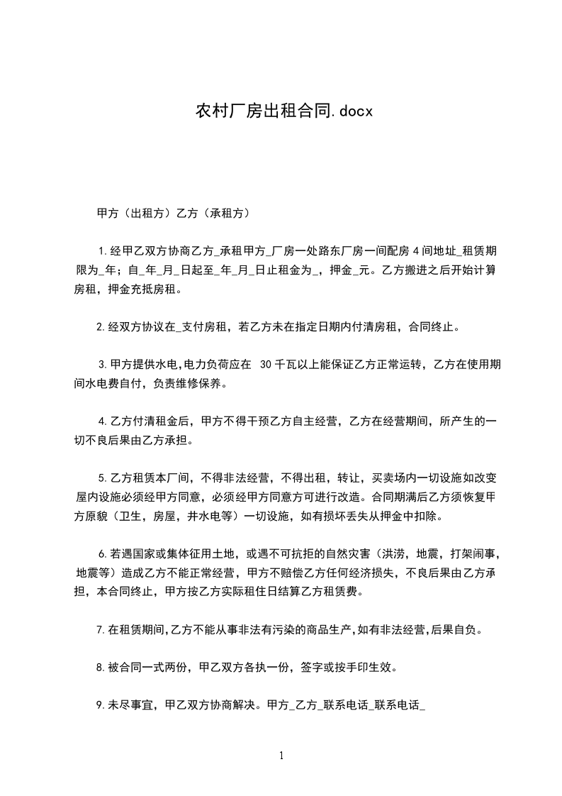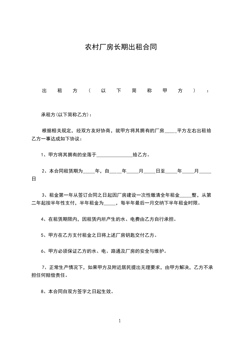 2、厂房租赁自_____ 年 ____月 ____日起,至____ 年 ____月____日止。租赁期______年。