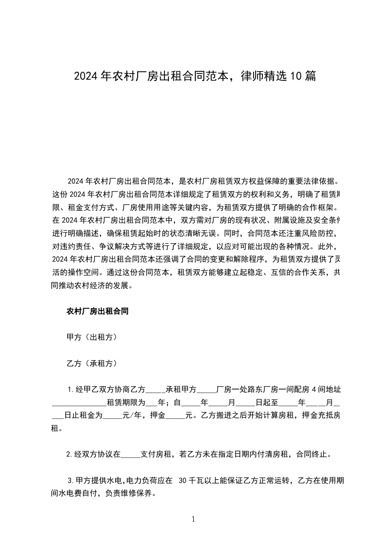 1、甲、乙双方约定,该厂房租赁每日每平方米建筑面积租金为人民币_____ 元。月租金为人民币_____元,年租金为___元。