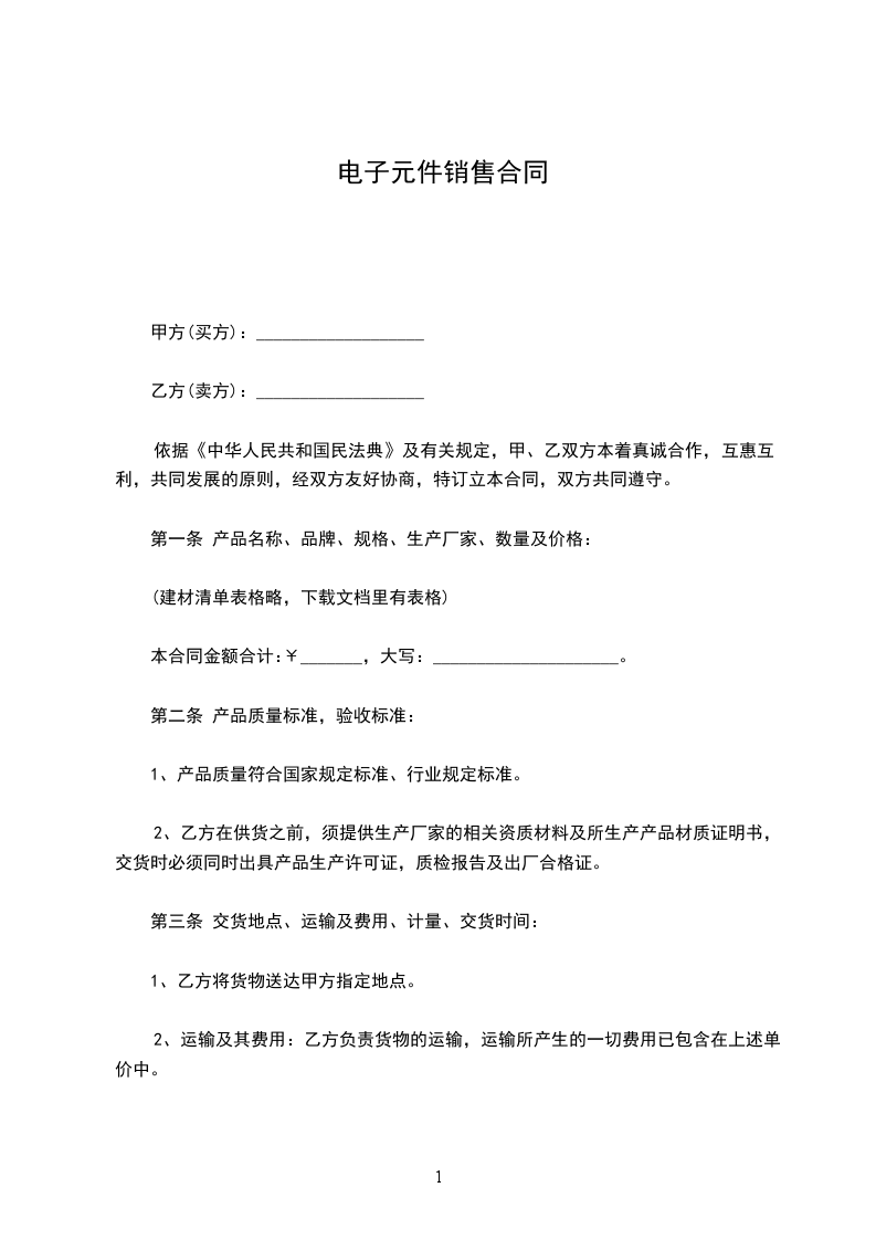 第一条 产品名称、品牌、规格、生产厂家、数量及价格: