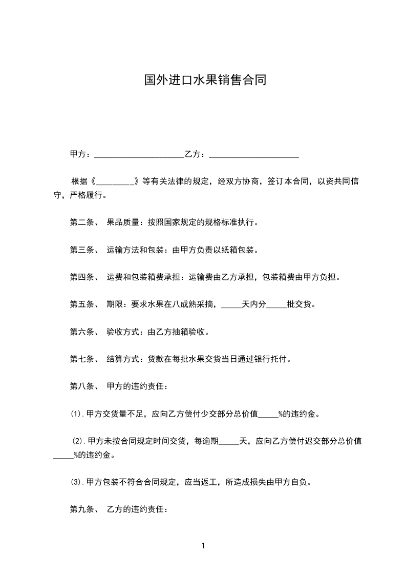第五条、 期限:要求水果在八成熟采摘,_____天内分_____批交货。