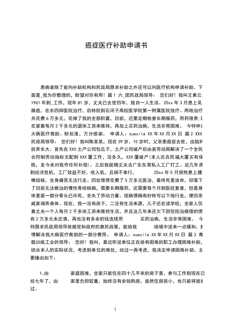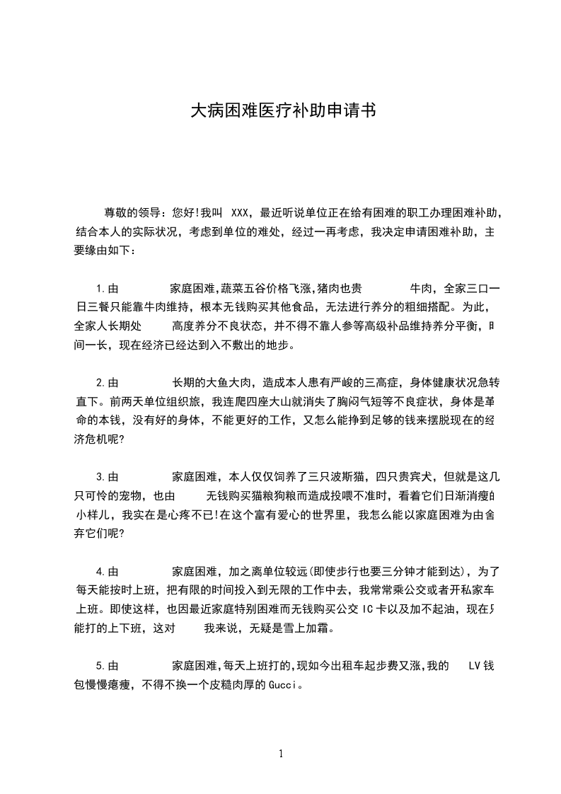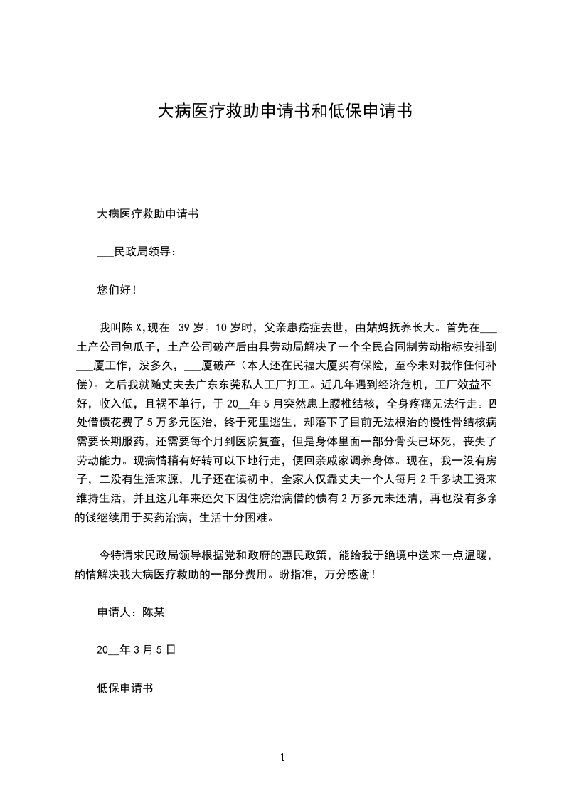 医疗救助申请书