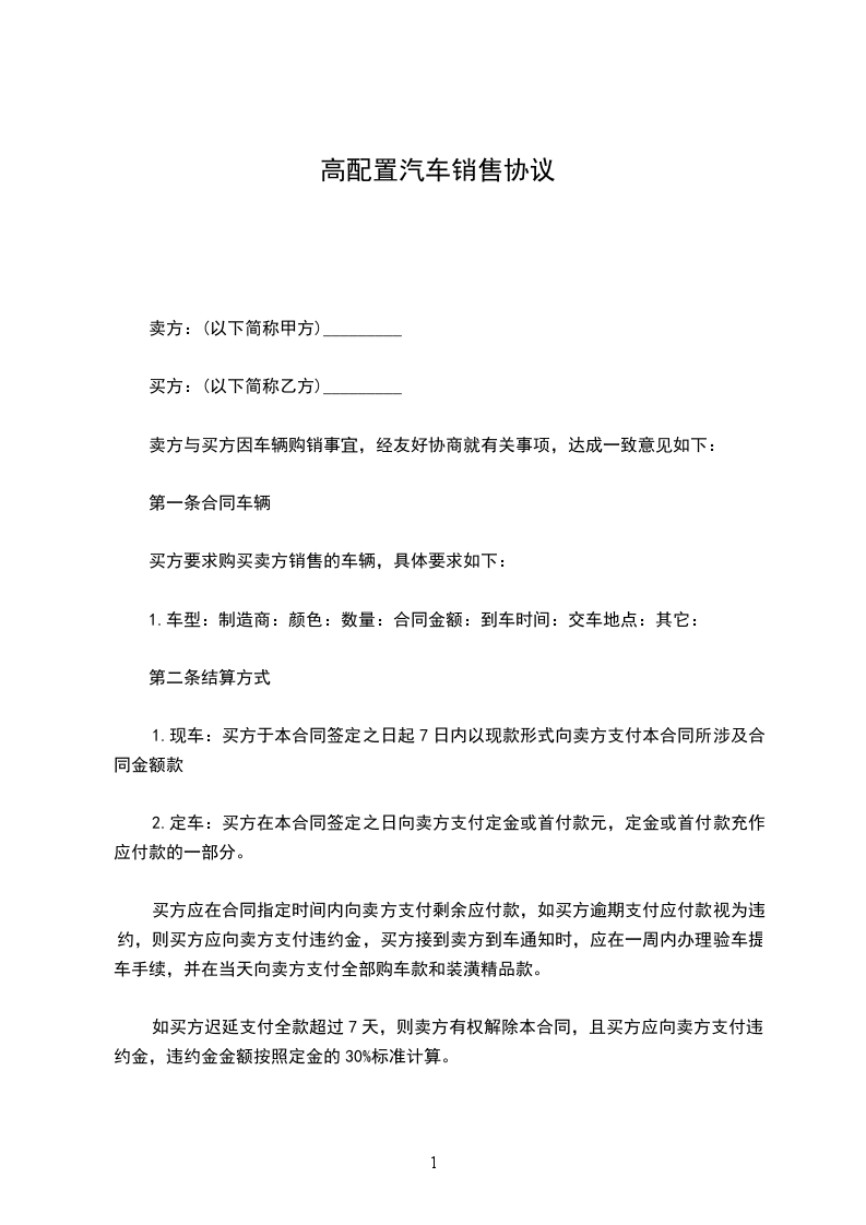 第一条、甲方就其约定,将其所有的轿车售予乙方,乙方买受。