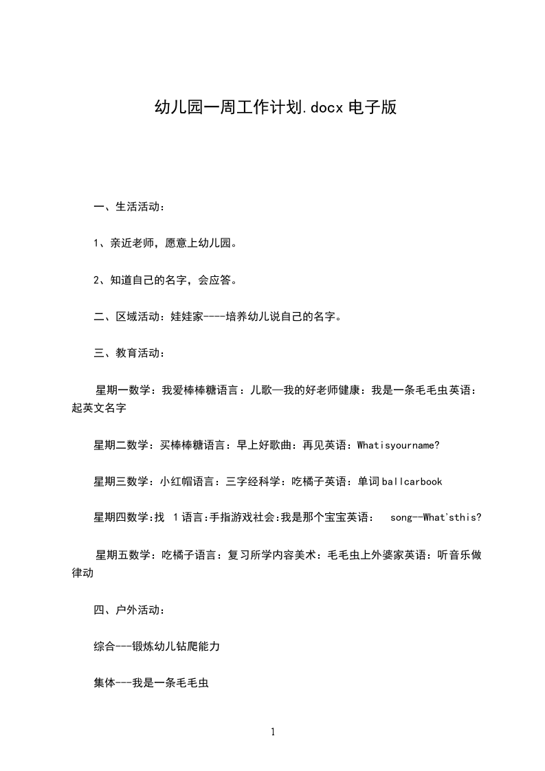 星期一数学:我爱棒棒糖语言:儿歌—我的好老师健康:我是一条毛毛虫英语:起英文名字