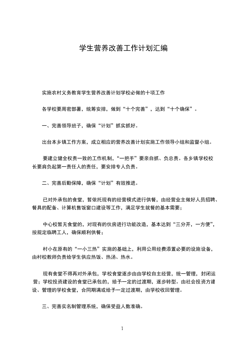 实施农村义务教育学生营养改善计划学校必做的十项工作