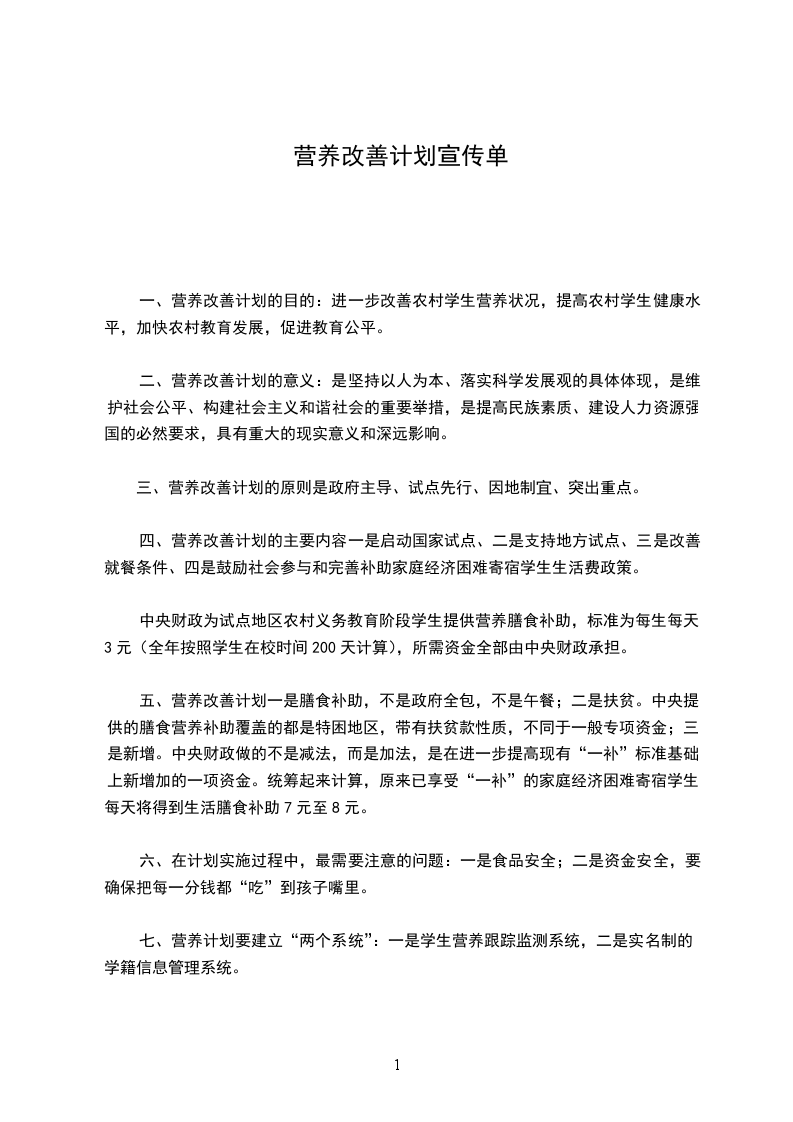 根据我县实际,先是解决吃饱的问题,再是解决吃出营养的问题,要由过去的你煮什么我吃什么向现在的我需吃什么你就煮什么转变。因此,各校必须根据当地情况,初步拟定周食谱,每天不重复;目前全国做得较好有重庆市,相关资料已放在县教育网营养改善计划专题网站,请参考。