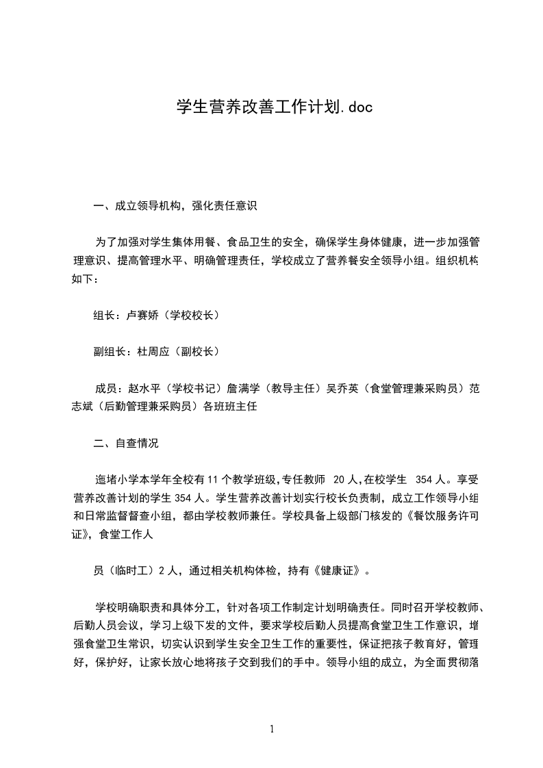 出台本乡镇工作方案,成立相应的营养改善计划实施工作领导小组和监督小组。