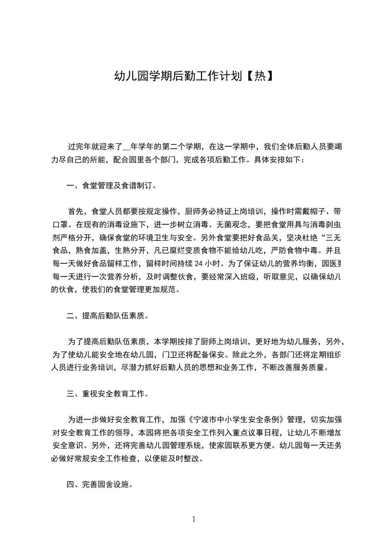 本学期,后勤工作人员要积极配合完成园中心工作,做好幼儿春游活动、科研结题汇报活动、亲子活动、__镇展示活动、六一庆祝活动等的后勤保障工作。