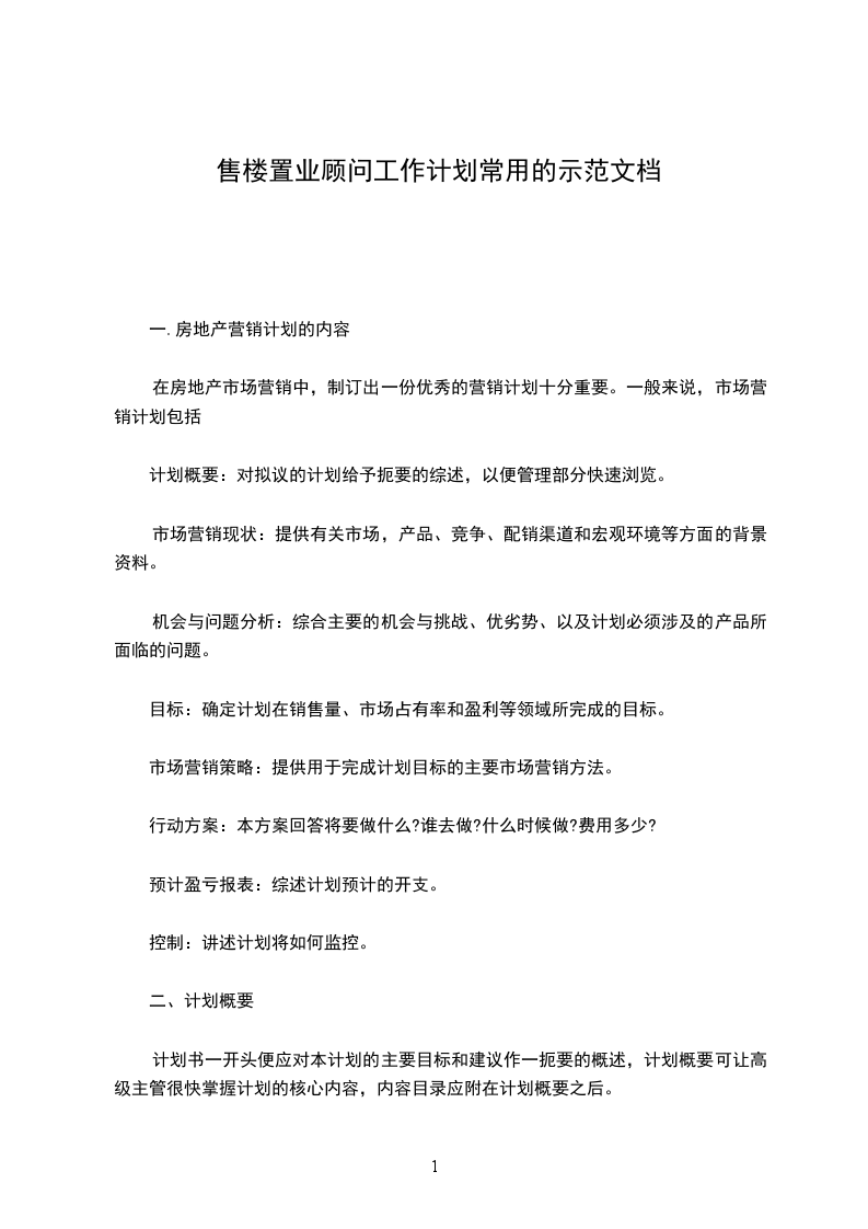 房地产营销计划的内容