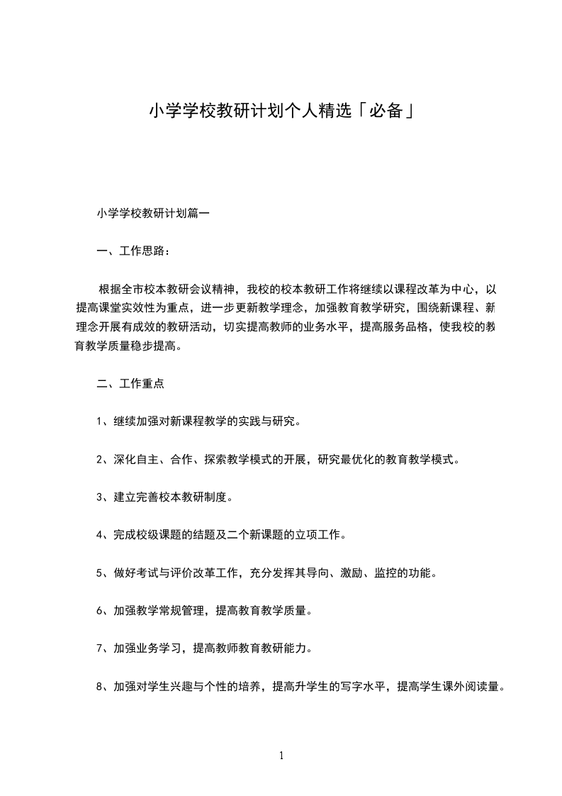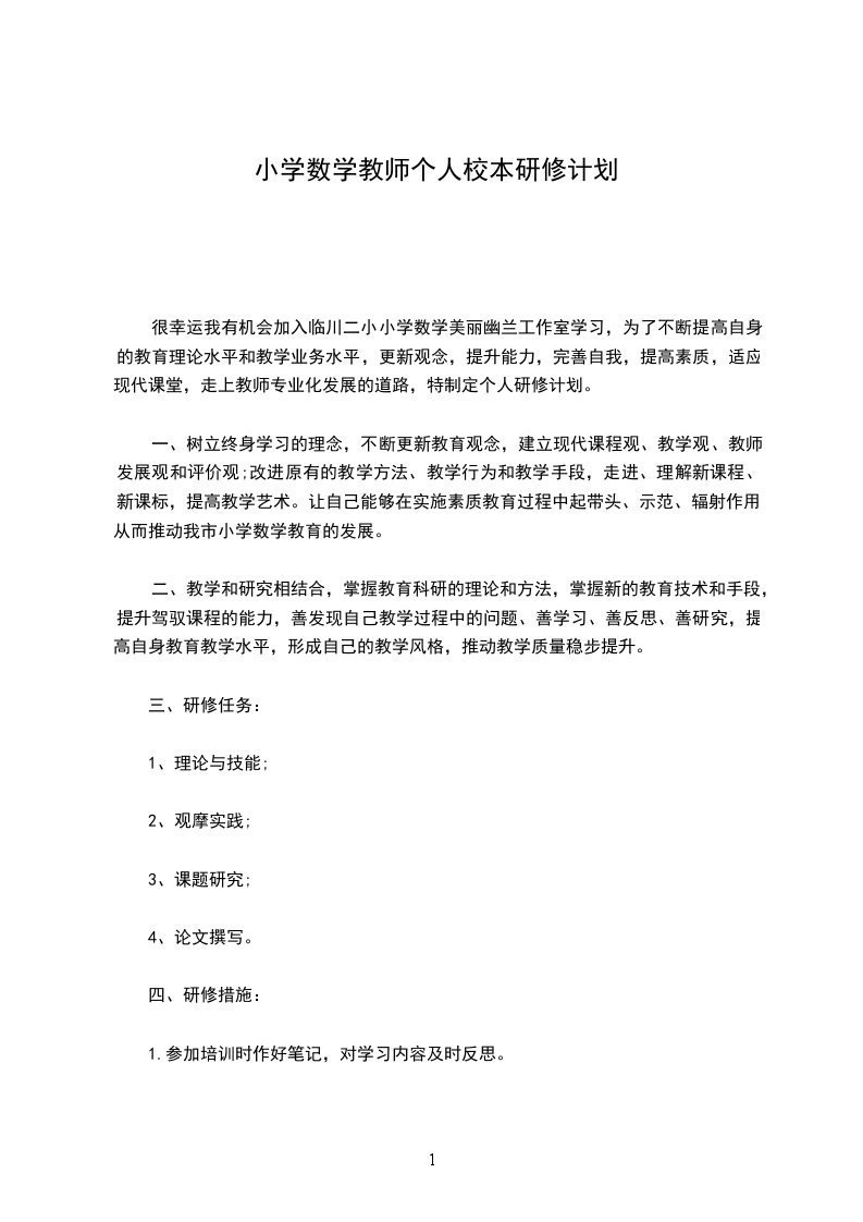 小学个人校本教研计划【二】“校本研修”作为一种新的促进教师专业成长的有效途径,为我们提供了一种开放的制度框架,营造了一个学习型的文化氛围,为教师构建一个专业发展的自我反思平台,通过教学反思提高教学水平,借助同伴互助提升教育理念。为使自己不断提高教育理论、增强知识、更新能力和教育教学能力,从各方面不断完善自己,提高自身综合素质,不断适应新时期教研的需要,跟上时代的步伐,不断更新自己的教育观念和创新意识,使自己尽快成长起来,在此,我特制定个人研修计划。