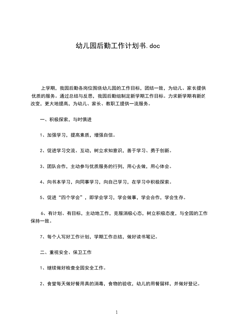 1、进一步加强人员的培训与教育,认真学习贯彻上级文件精神,细学《保育工作手册》,使后勤保育工作细化、量化,增强工作责任心,尽力协助老师共同完成保教任务。